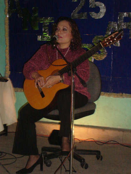 Samuel Miranda cantando sus composiciones catòlicas durante la Semana Cultural |